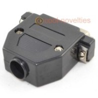 A brand-new 9 way female D sub connector with solder buckets for easy soldering. Comes complete with matching black plastic hood with fixing screws and cable clamp.